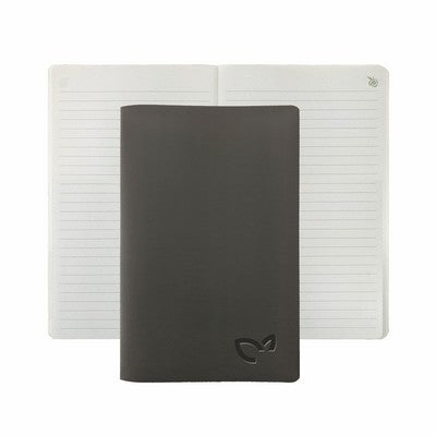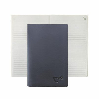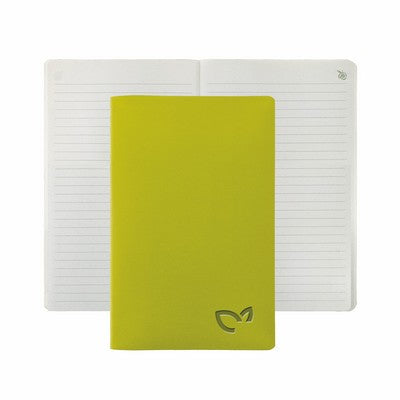 Featuring a flexible cover, 64 apple paper pages with green lines and saddle-stitching with matching color thread. Complies with FSC, Oeko-Tex Std 100, Prop 65, REACH, USDA. 5 1/4" W x 8 3/8" H