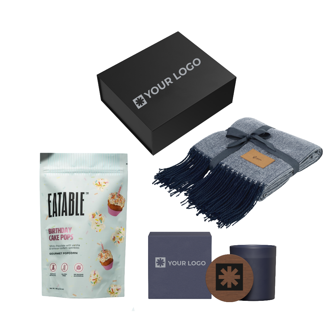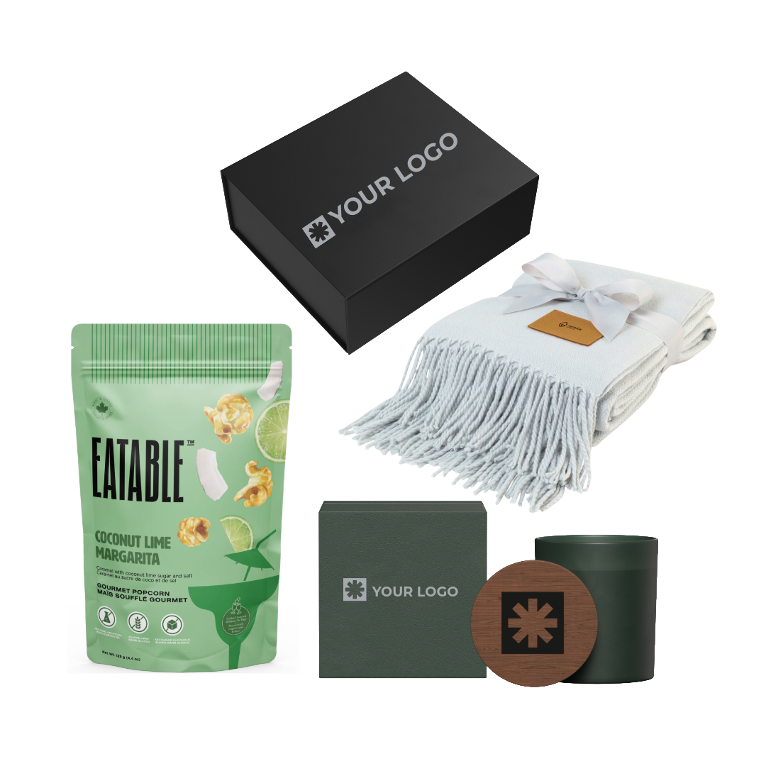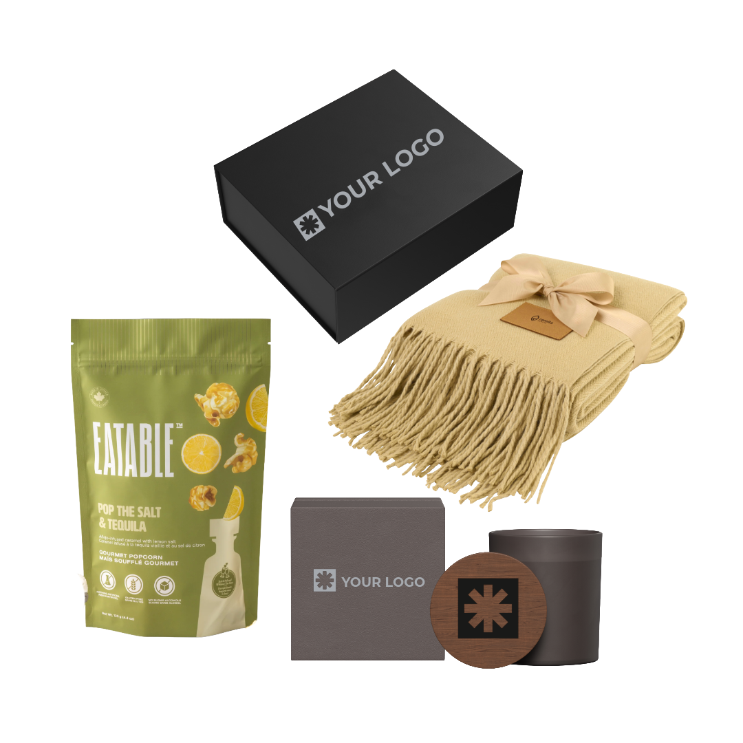 Show your appreciation with this thoughtfully curated gift bundle that encourages relaxation and well-being. The Couch Companion includes Eatable’s premium handcrafted popcorn, a luxuriously soft Everlasting throw blanket, and a soothing vanilla scented candle - all from trusted Canadian suppliers. Designed to bring warmth and comfort to any space, this elevated night-in bundle is a meaningful way to thank clients or reward employees with a moment of calm in their busy lives.