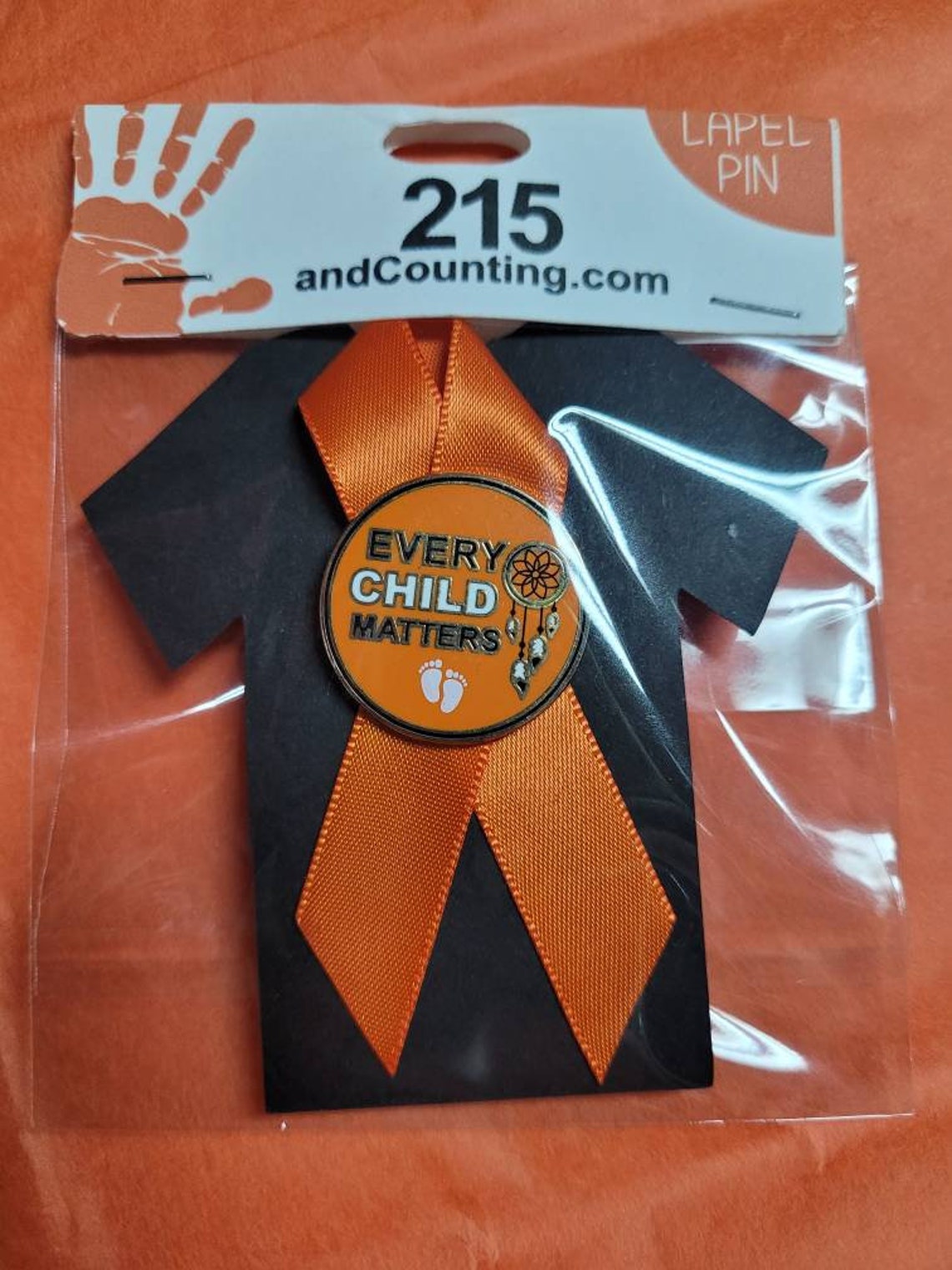 Show your support for this important cause with this beautifully designed Every Child Matters lapel pin and orange awareness ribbon.