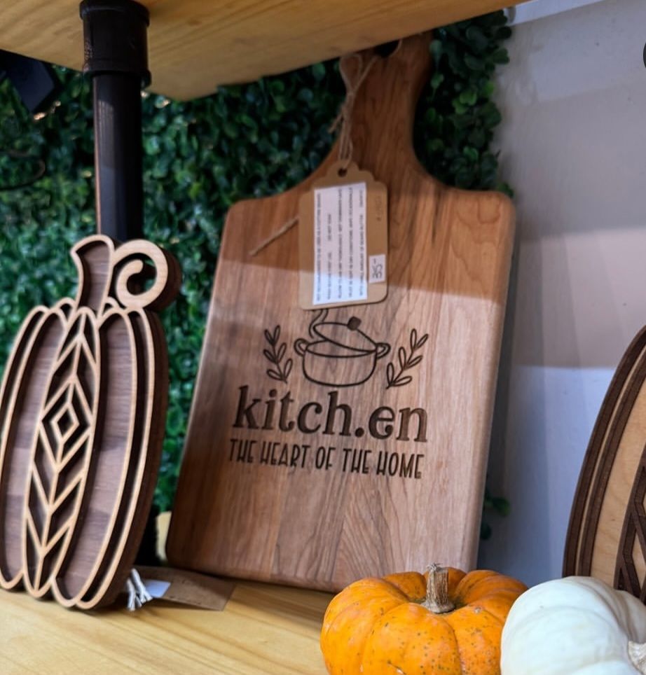 After needing to downsize after their 3 daughters moved out, she found herself needing to be creative and purchased an Epilog Laser in 2021. Since then, she taught herself on it's operations, and now has a blooming business creating artwork and décor. Her pieces are one of a kind and are quite unique.