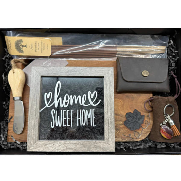 Each item in this all-Canadian bundle is from a Niagara based, woman-owned business and is delicately handcrafted. A floral shadow box, charcuterie board and incense sticks create an inviting home atmosphere, and the leather card holder and crystal gemstone are elevated works of art that the recipient can take with them on the go.
