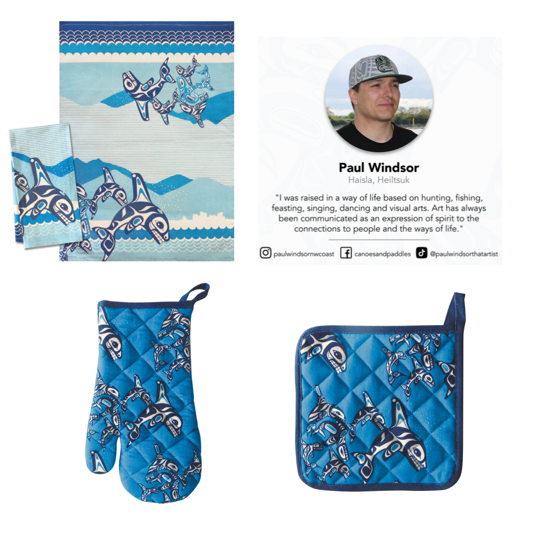 Show appreciation to your clients or employees with this beautiful kitchen bundle featuring Indigenous Art and sustainable kitchen essentials. All sourced from Canadian Companies.