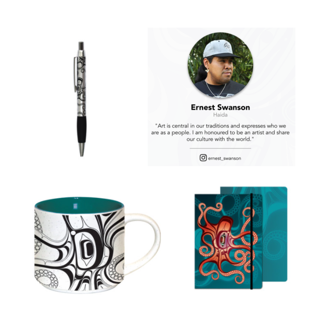 100% of the art featured is designed by Indigenous artists and fees and royalties are paid for each product sold.