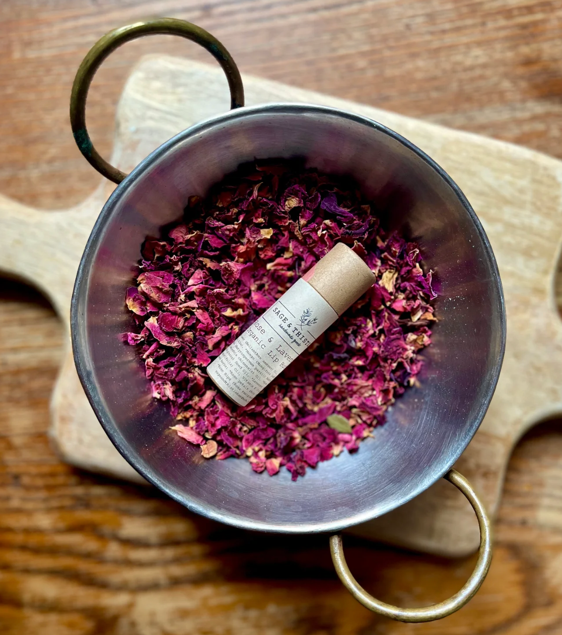 Rose & Lavender Ingredients: Non-GMO Canadian Sunflower (Helianthus annuus) Oil, *Raw Beeswax (Cera alba), *Mango (Mangifera indica) Butter, +Shea (Butyrospermum parkii) Seed Butter, *Jojoba (Simmondsia chinensis) Oil, *Virgin Rose Hip (Rosa Rubiginosa) Seed Oil, *Lavender (Lavandula angustifolia) Oil, *Vitamin E (Tocopherol) Oil, Infused Herbs: *Rose Petals (Rosa centifolia), *Rose Hips (Rosa rubiginosa)