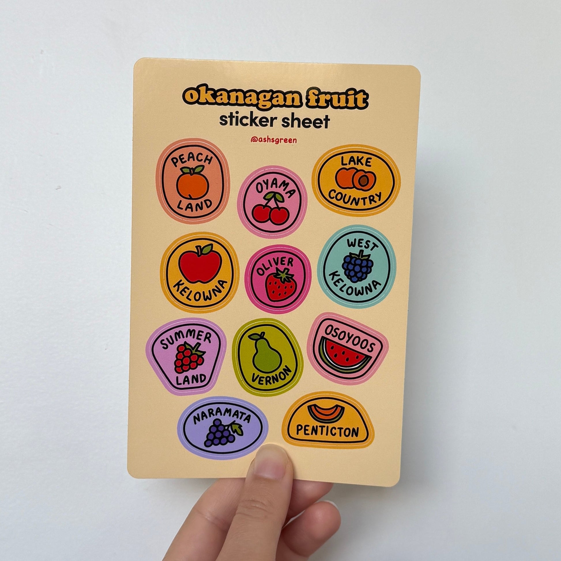 All of the cities and towns across the Okanagan Valley in little fruit stickers