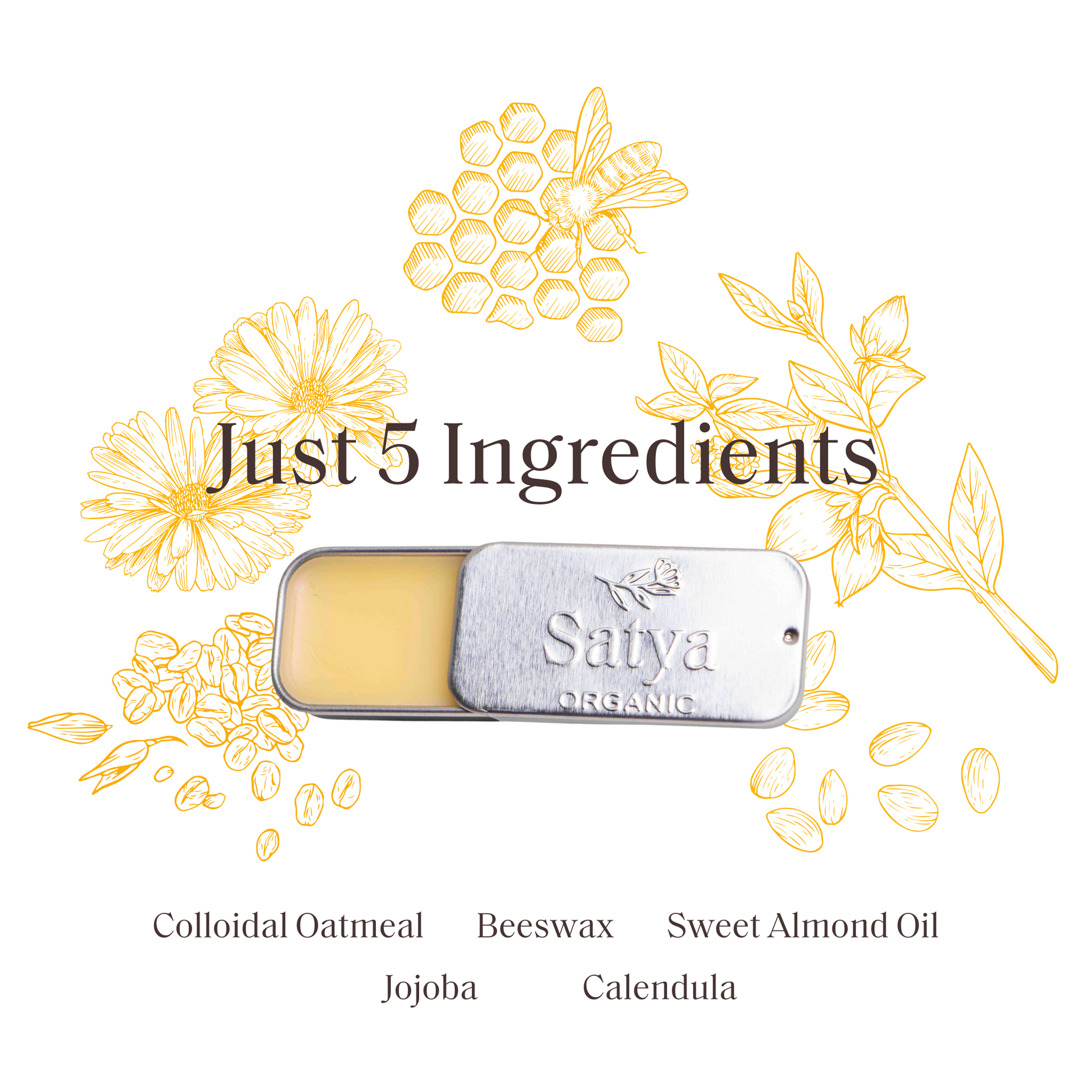 Gluten-Free Colloidal Oatmeal*, Calendula flower*, Sweet Almond Oil*, Jojoba Oil* Yellow Beeswax*