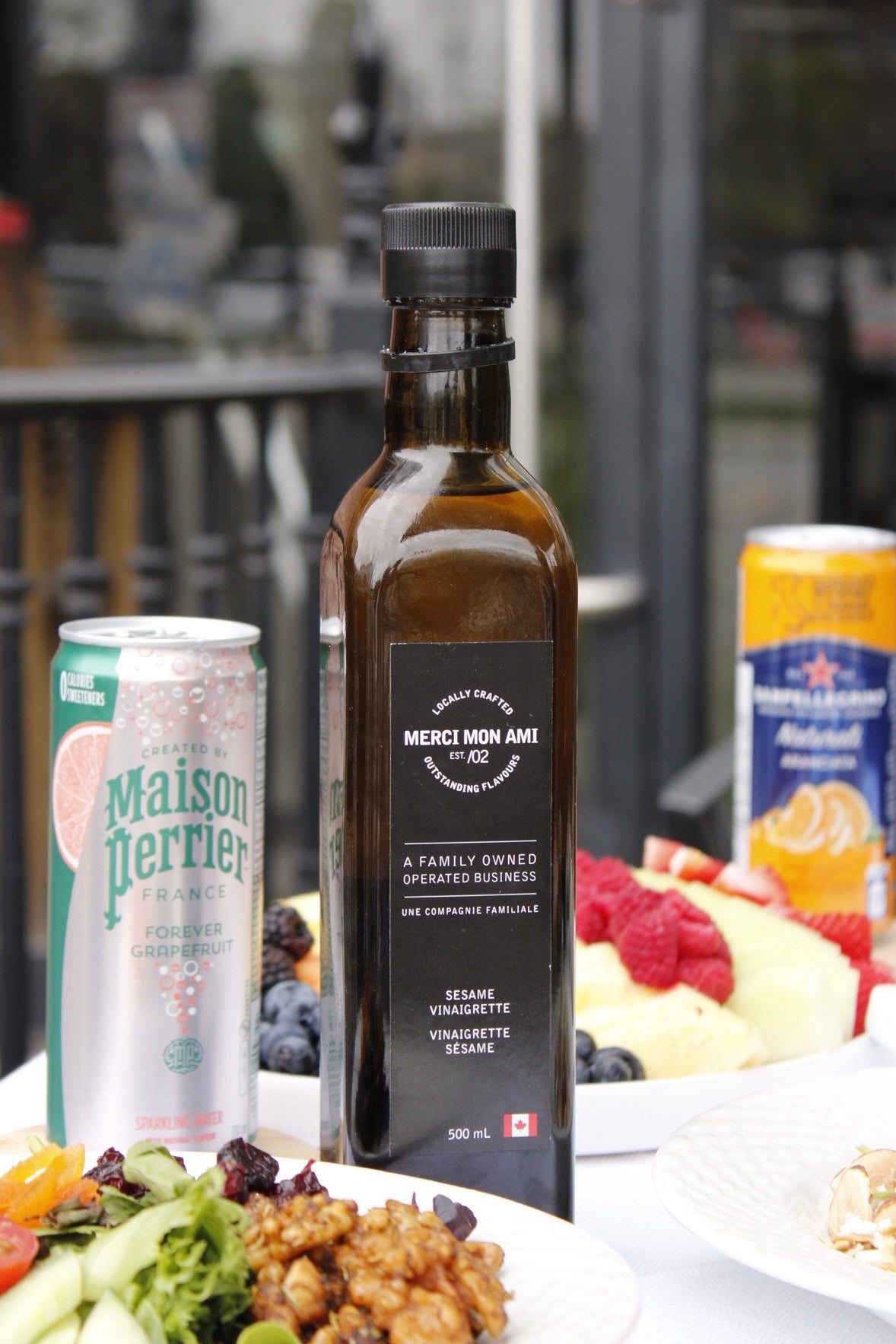 Created by Chef Cindy in 2002, this original recipe quickly became a fan favourite. Because of overwhelming demand, our Sesame Soy Vinaigrette was the catalyst for bottling all of our dressings and sauces in 2008. This salad dressing has the perfect balance of sweetness and a savoury sesame finish, this dressing elevates any dish. It is no surprise that everyone who tries it ends up eating more salad!