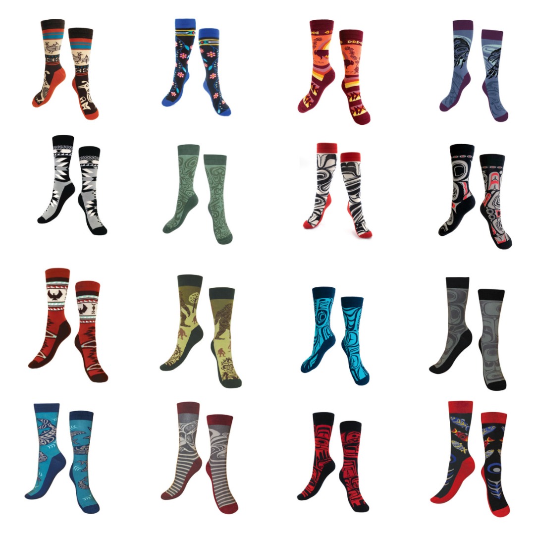 2) Premium socks - Featuring commissioned and royalty-paid artwork from Indigenous Artists